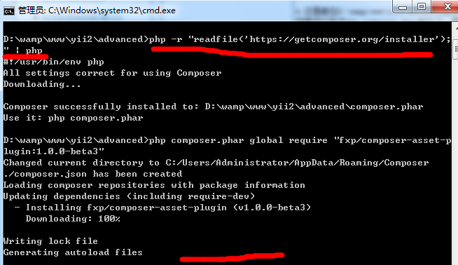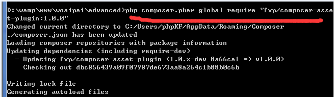 執(zhí)行命令:php composer.phar global require "fxp/composer-asset-plugin:1.0.0"