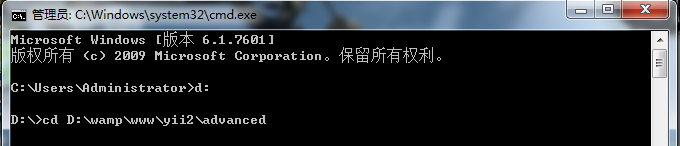 cmd dos命令進(jìn)入這個(gè)D:\wamp\www\yii2\advanced下: