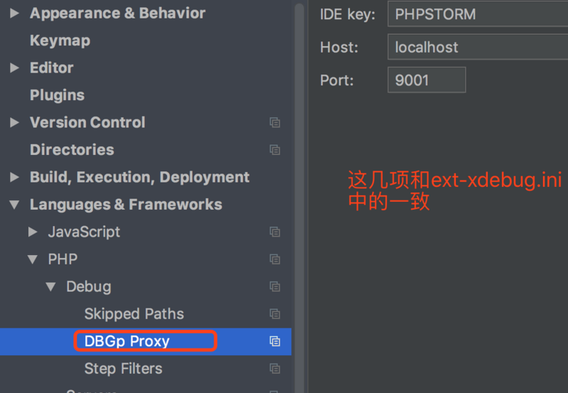 配置如下: [xdebug] zend_extension="/usr/local/opt/php70-xdebug/xdebug.so" xdebug.remote_enable = On xdebug.remote_handler = dbgp xdebug.remote_host= localhost xdebug.remote_port = 9001 #這個端口不要被占用即可,可以自行指定 xdebug.idekey = PHPSTORM xdebug.remote_autostart=1 xdebug.remote_log=/var/tmp/xdebug.log