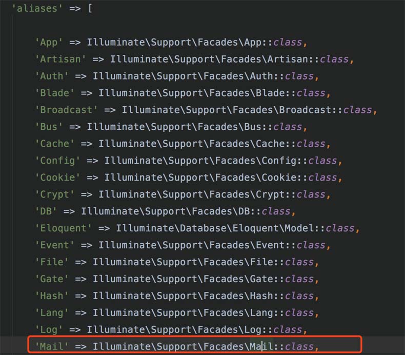 5.1、例如config/app.php里的mail