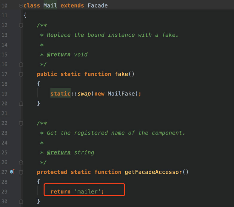 5.4、這個方法會得到mailer的實例,即app('mailer')