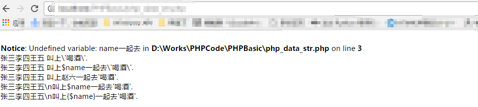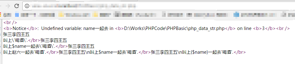 echo '張三李四王五\n叫上{$name}一起去\'喝酒'.';
