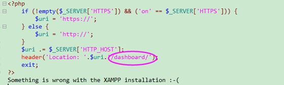 打開xmapp下htdocs文件夾下 index.php文件 配置文件中默認(rèn)跳轉(zhuǎn)到本文件夾