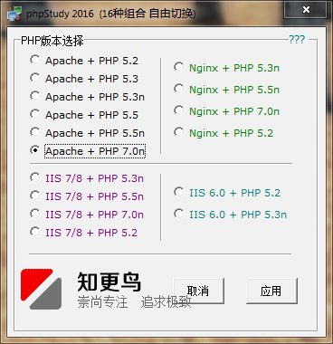選擇之后,點擊應用按鈕,phpStudy會自動重啟服務并切換到你選擇的環(huán)境。