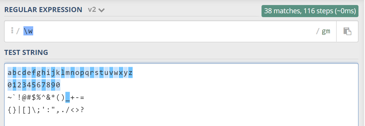 \w 字母數(shù)字下劃線通配符,可以匹配到任意的字母數(shù)字下劃線