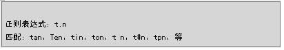 假設(shè)你在玩英文拼字游戲,想要找出三個字母的單詞,而且這些單詞必須以“t”字母開頭,以“n”字母結(jié)束。另外,假設(shè)有一本英文字典,你可以用正則表達式搜索它的全部內(nèi)容。要構(gòu)造出這個正則表達式,你可以使用一個通配符——句點符號“.”。這樣,完整的表達式就是“t.n”,它匹配“tan”、“ten”、“tin”和“ton”,還匹配“t#n”、“tpn”甚至“t n”,還有其他許多無意義的組合。這是因為句點符號匹配所有字符,包括空格、Tab字符甚至換行符: