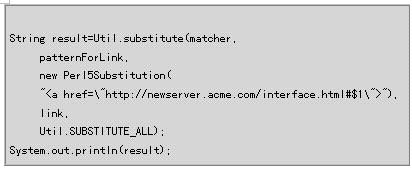 你還可以在appendReplacement( )的replacement參數(shù)里用"$g"引用已捕獲的group,其中'g' 表示group的號碼。不過這是為一些比較簡單的操作準(zhǔn)備的,因而其效果無法與上述程序相比。