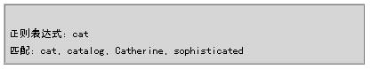 我們先從簡單的開始。假設(shè)你要搜索一個包含字符“cat”的字符串,搜索用的正則表達式就是“cat”。如果搜索對大小寫不敏感,單詞“catalog”、“Catherine”、“sophisticated”都可以匹配。也就是說: