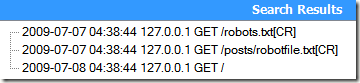 2009-07-07 04:38:44 127.0.0.1 GET /posts/robotfile.txt