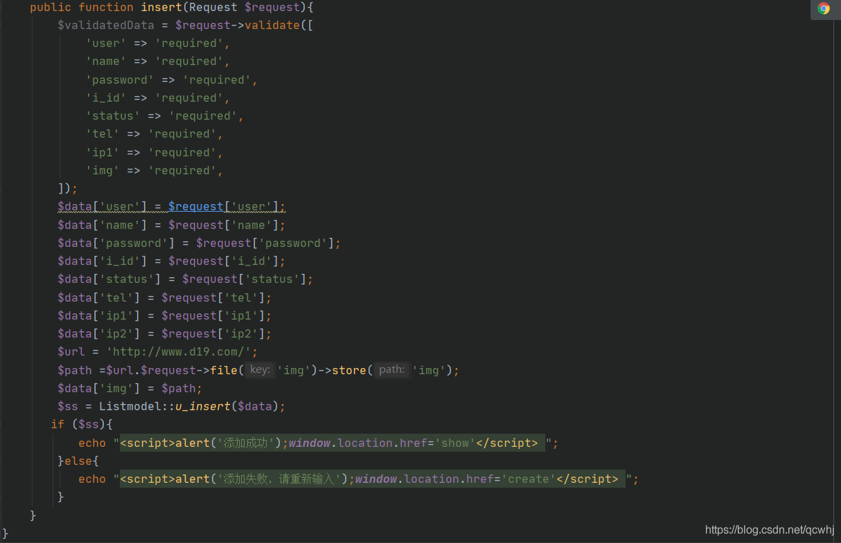$data[‘img'] = p a t h ; ¥ s s = L i s t m o d e l : : u − i n s e r t ( path; ¥ss = Listmodel::u-insert(path;¥ss=Listmodel::u−insert(data);