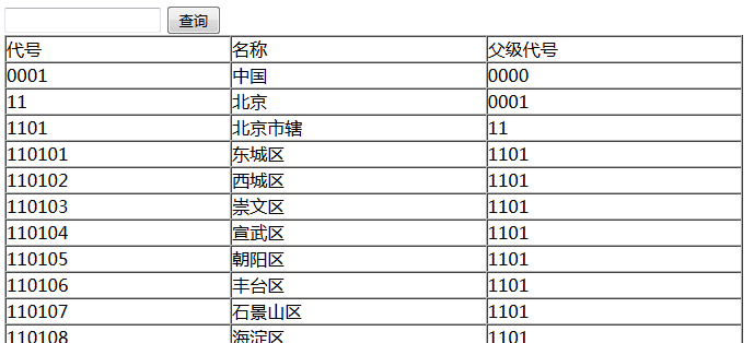 input type="button" value="查詢" id="chaxun" /> //查詢按鈕,起名字是為了以后給這個按鈕加事件,因為只有點擊了才可以將文本框的內容進行查詢