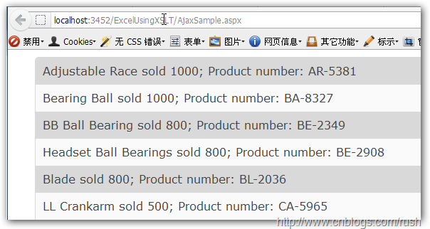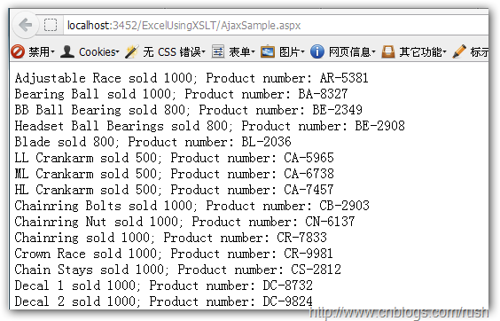 這里我們以AdventureWorks數(shù)據(jù)庫為例,把產(chǎn)品表(Product)中的數(shù)據(jù)通過報表呈現(xiàn)給用戶,我們可以通過多種方法實現(xiàn)該報表需求,這里我們將通過Ajax實現(xiàn)該功能。