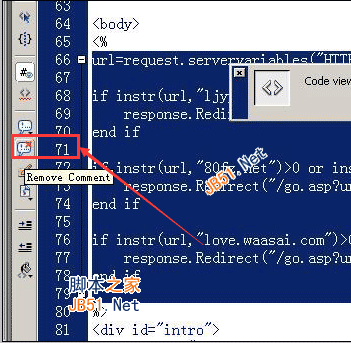 多行注釋呢?其實ASP里不支持多行注釋,比如/**/等肯定無法實現(xiàn)。也有一種間接的方法,那就是將ASP代碼作為HTML代碼一樣的注釋,很明顯這是很沒安全的做法,因為會直接暴露源代碼。 借助Dreamweaver8,可以方便地實現(xiàn)對ASP腳本代碼的批量多行注釋,該功能能夠?qū)崿F(xiàn)直接在選定的每一行前加上單引號,也可以方便地取消這些注釋。