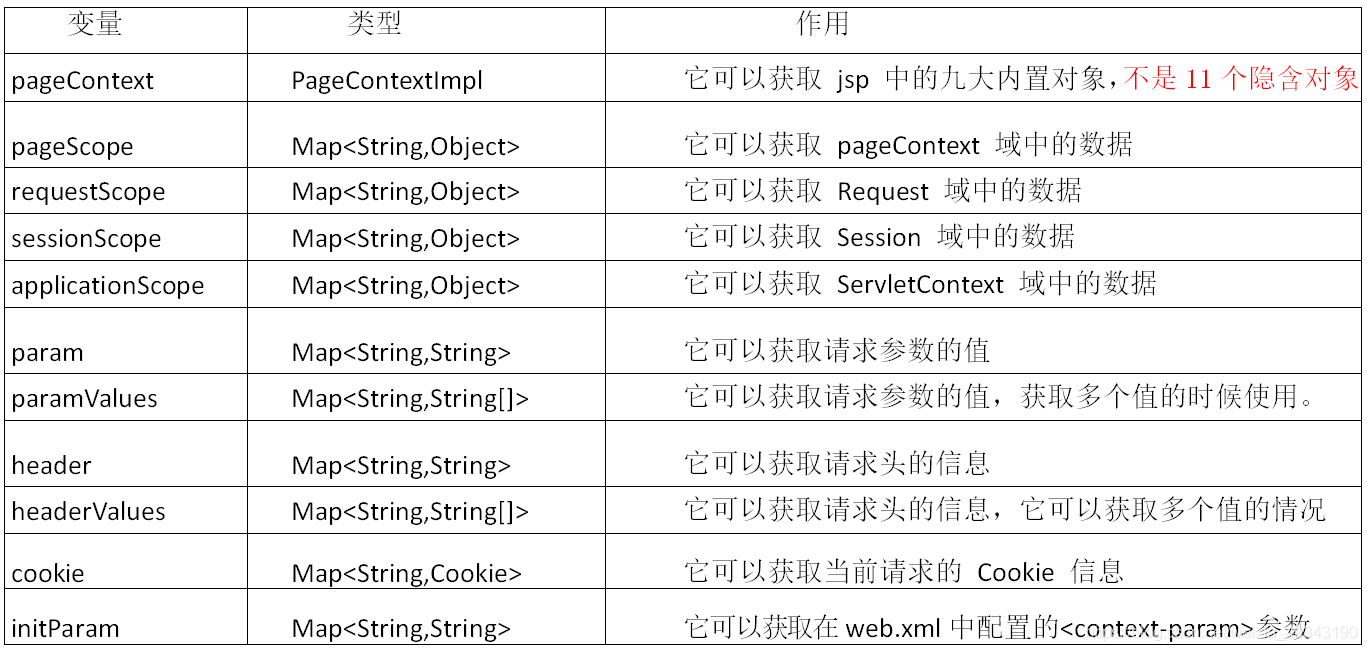 EL表達(dá)式中的11個(gè)隱含對(duì)象是EL表達(dá)式自己定義的,可以直接使用