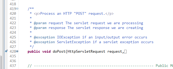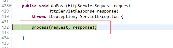先我們來對ActionServlet深層次進行分析。我們用斷點的調(diào)試的方式來看底層源碼。因為這個實例是post方式提交,所以將斷點設(shè)置到doPost方法上。