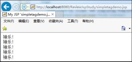 在JSP頁(yè)面中的主體部分中使用剛才自定義的簡(jiǎn)單標(biāo)簽: