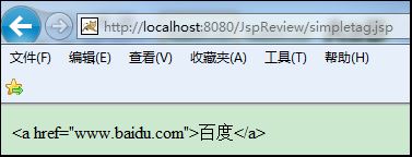 在JSP頁(yè)面中導(dǎo)入taglib指令(此處略)后,在JSP頁(yè)面的主體中使用剛才定義的簡(jiǎn)單標(biāo)簽: