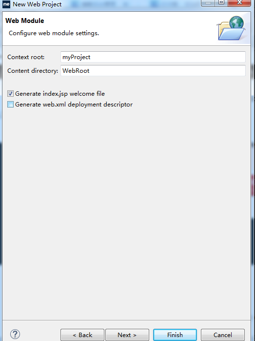 4,單擊Finish,完成Web project工程的創(chuàng)建。