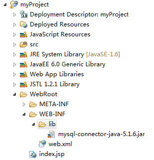9,接下來需要在創(chuàng)建的目錄中添加MySQL數(shù)據(jù)庫驅(qū)動,需要將相應的MySQL數(shù)據(jù)庫驅(qū)動粘貼到WEB-INF/lib文件夾下。