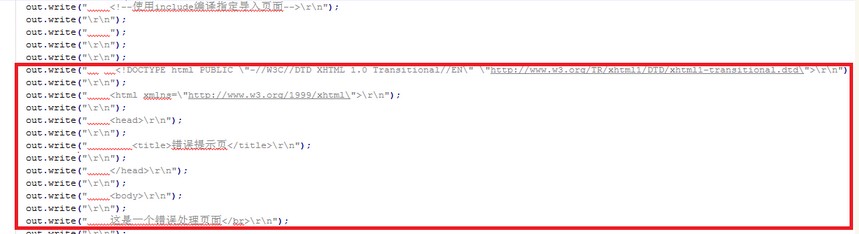 編譯后查看生成的servlet代碼,可以看到如下段: