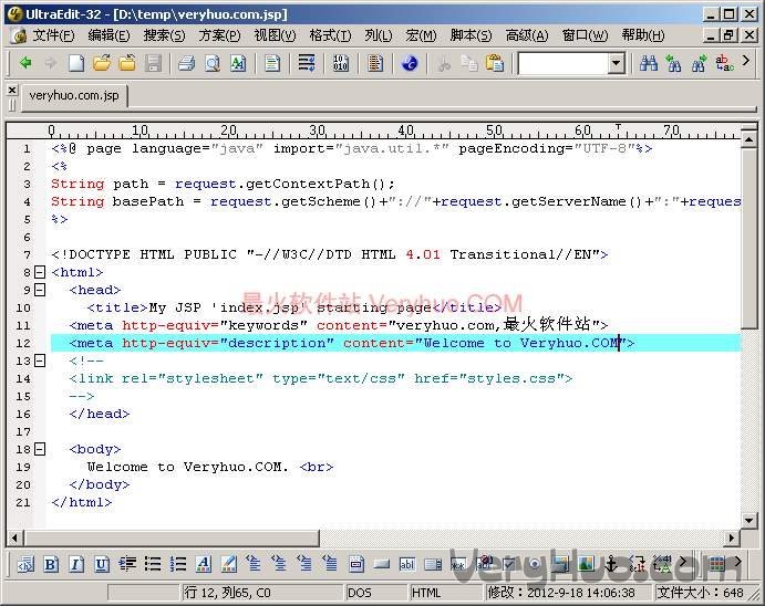 UE編輯器全稱UltraEdit,是一款多功能的編輯器,其能打開(kāi)的文本文件多到我數(shù)不出來(lái)。對(duì)于一個(gè)網(wǎng)站開(kāi)發(fā)者而言,UE編輯器顯示的效果以及功能上都要比記事本強(qiáng)很多,所以使用者還是挺多的。下圖就是使用UE編輯器打開(kāi)同一個(gè)jsp格式文件的效果: