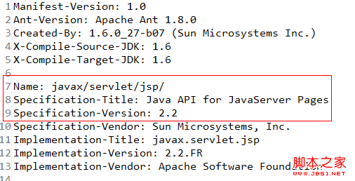 打開(kāi)tomcat下lib文件下的jsp-api.jar下的/META-INF/MANIFEST.MF文件,查看jsp版本。