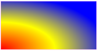 /*徑向漸變,從左下角向外由紅色,黃色,藍(lán)色漸變顯示,并設(shè)置藍(lán)色色標(biāo)的顯示位置*/