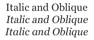 很多考究的字體都會為意大利體定制一套特殊的字體,而不是簡單的顯示成斜體。比如下面的圖片里,三行文字都是Georgia字體。第一行普通;第二行是oblique,也就是斜體;第三行才是真正的italic意大利體。