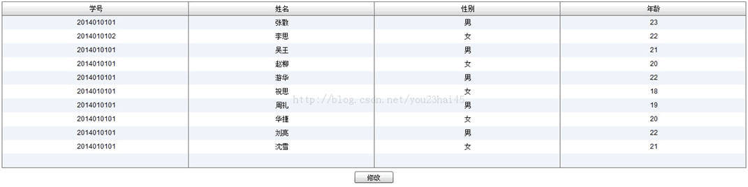{number:"2014010101",name:"沈雪",sex:"女",age:"21"}