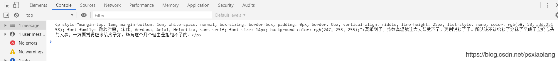 可以看出來(lái)轉(zhuǎn)換出的Jquery對(duì)象代表的是content中第一個(gè)html元素p,剩下的html元素獲取不到,也就無(wú)法進(jìn)行第三步獲取圖片地址。