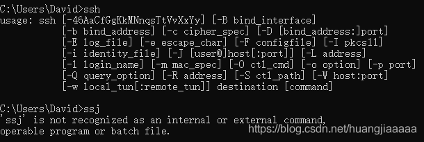 在cmd輸入ssh,出現(xiàn)下面信息代表安裝成功