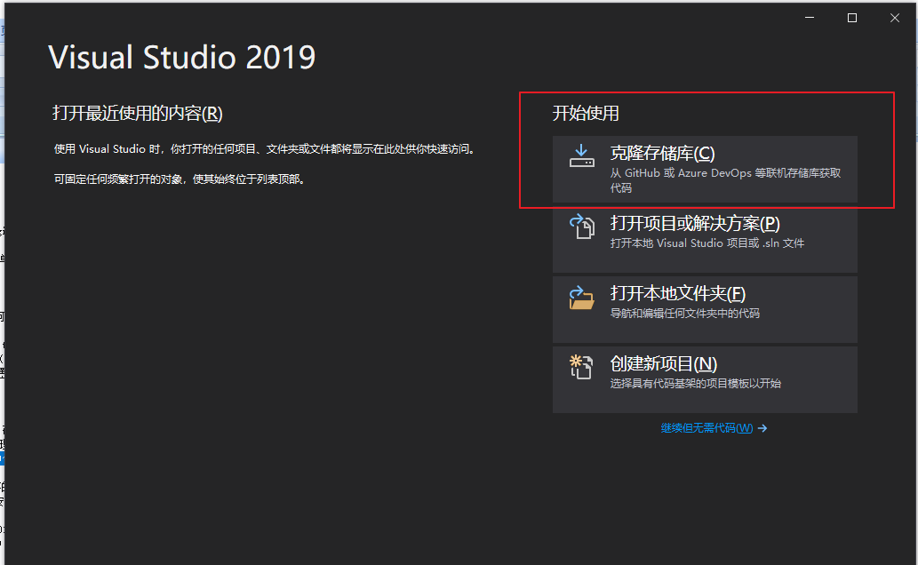 Visual Studio 2019中自帶Git功能。如下圖。