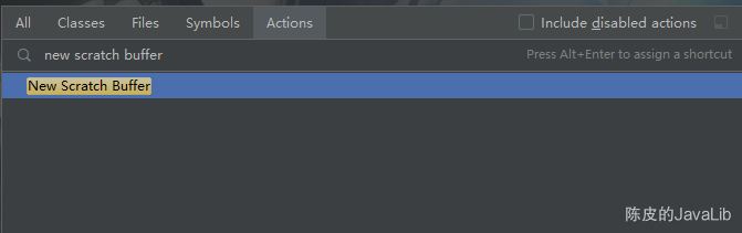 IDEA中沒有專門的菜單項(xiàng)來創(chuàng)建新的scratch buffer,但是我們可以使用Find action(快捷鍵Ctrl+Shift+A),然后輸入new scratch buffer來創(chuàng)建。