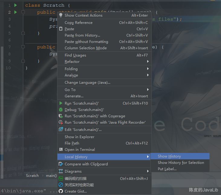 - Scratch files(臨時(shí)文件) 是功能完備,可運(yùn)行并且可調(diào)試的文件,它還支持語法高亮顯示,代碼補(bǔ)全,以及相應(yīng)文件類型的所有其他特性。因?yàn)榕R時(shí)文件是不跟項(xiàng)目掛鉤的,不存儲(chǔ)在項(xiàng)目目錄中,你在當(dāng)前項(xiàng)目中創(chuàng)建的臨時(shí)文件,在打開其他項(xiàng)目時(shí),也是能訪問到的??梢允褂门R時(shí)文件來編寫一些簡(jiǎn)單Java代碼、HTTP請(qǐng)求、JSON文檔等等。