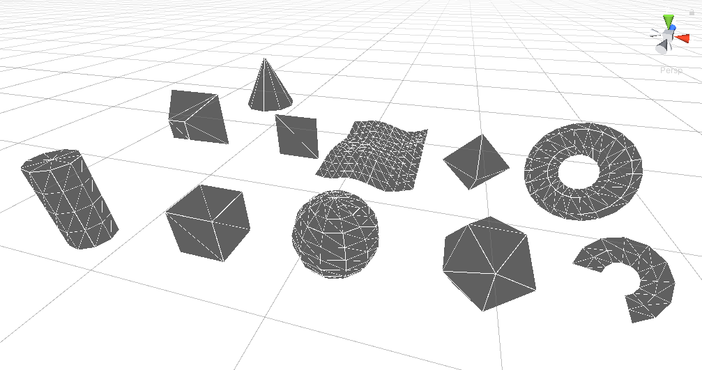 下面這些就是使用純代碼創(chuàng)建出來的幾何體網(wǎng)格,感興趣的同學(xué)可以下載項目源碼下來學(xué)習。