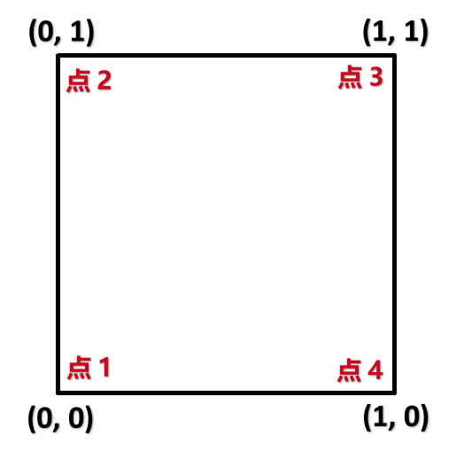 對應(yīng)到我們的上面那個正方向網(wǎng)格的話,四個點的UV坐標如下: