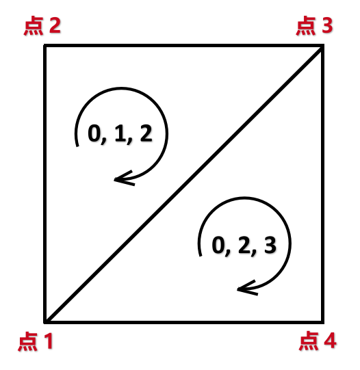 兩種切分方法對應(yīng)不同的三角形序列,假設(shè) 法線方向 是垂直于屏幕從內(nèi)指向屏幕外的話,第一種切分方式的三角形序列如下: