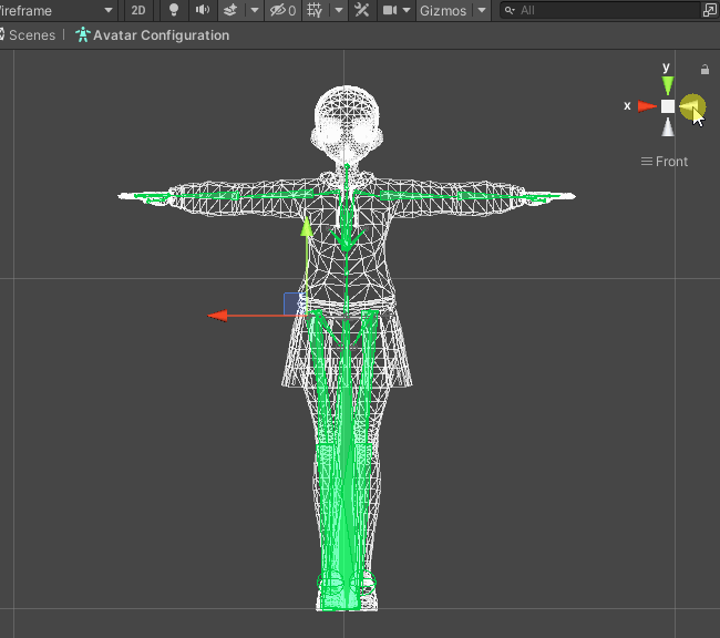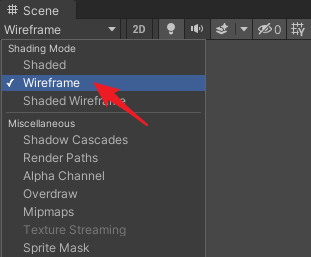 將Scene視圖的模式設(shè)置為Wireframe,如下