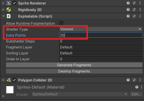 點擊Explodable組件的Generate Fragments按鈕,即可生成碎片。