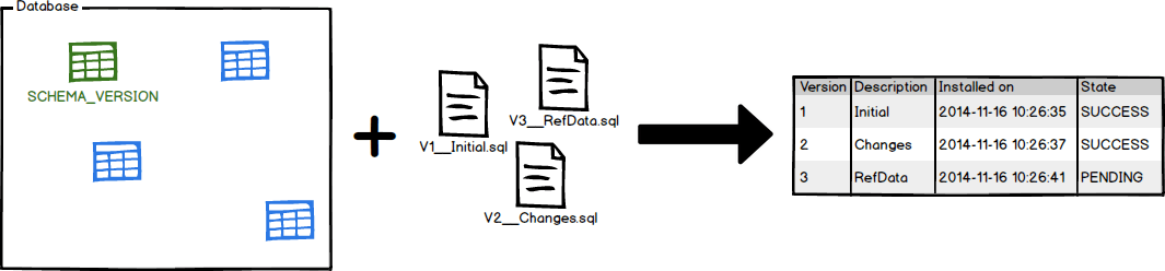 Flyway官網(wǎng)上提供了一個很清晰的示例How Flyway works,可以參閱一下。