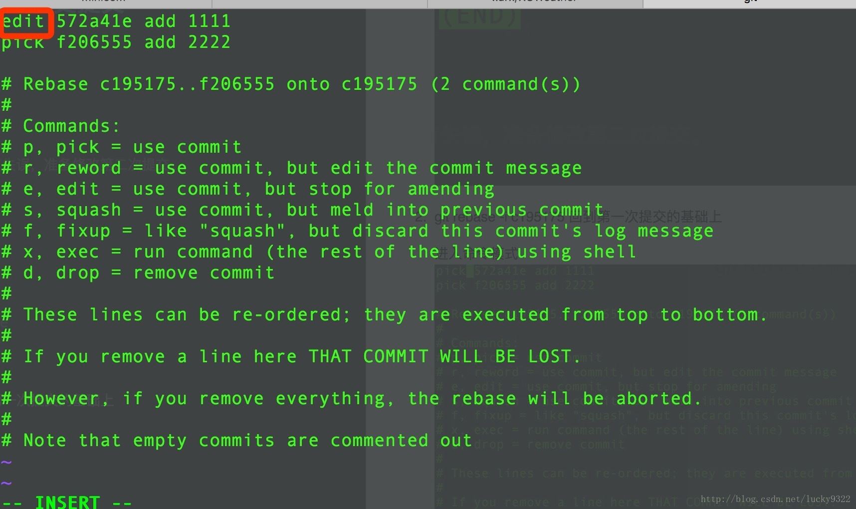 git rebase -i c195175 回到第一次提交的基礎上