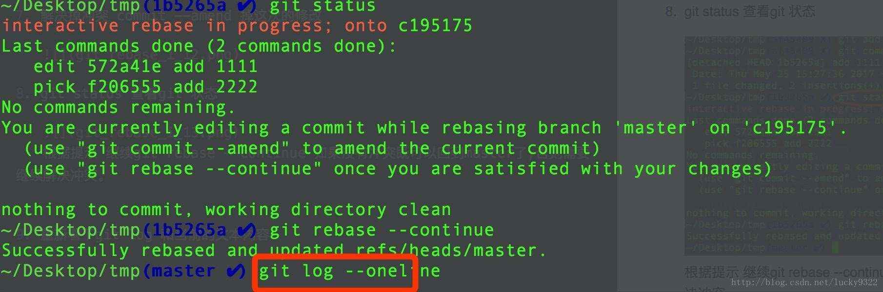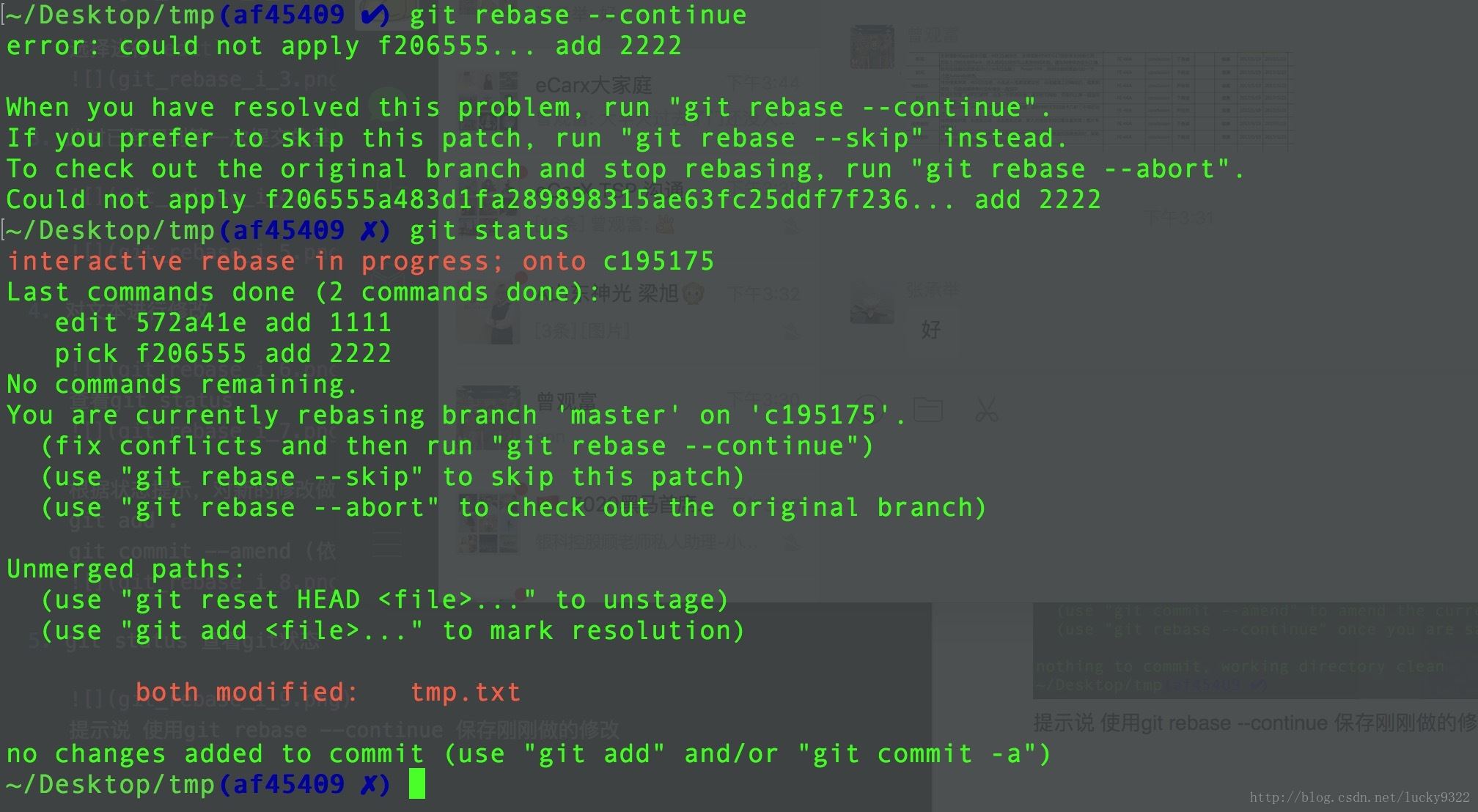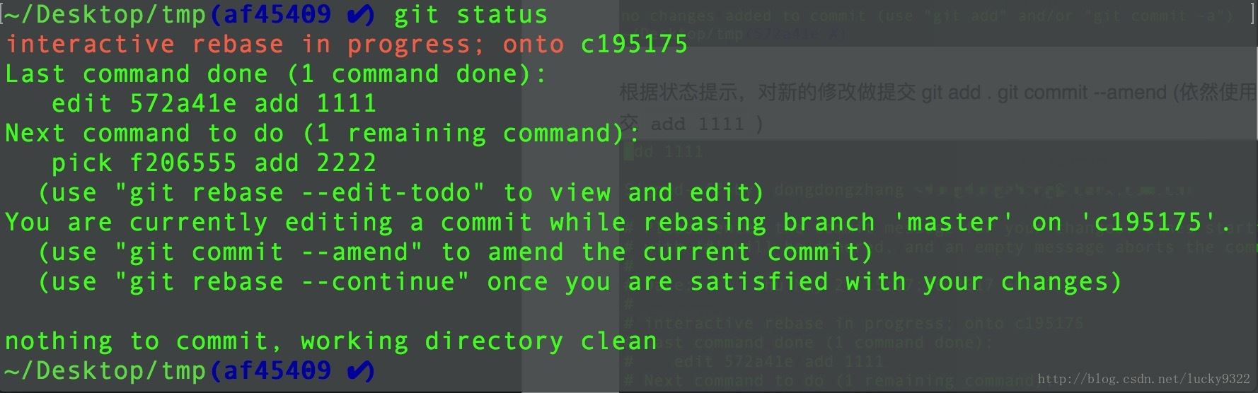 提示說明結(jié)果一些問題,然后繼續(xù) git rebase –continue