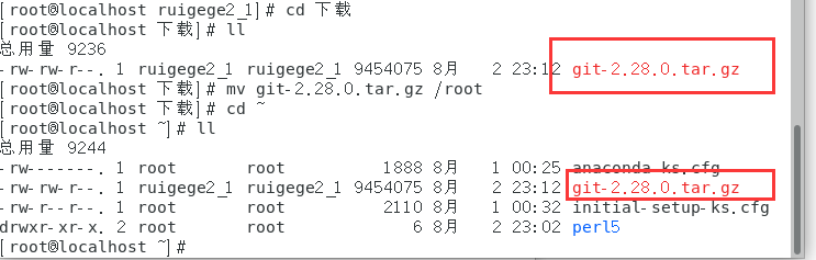 (2)自行下載git安裝包,進(jìn)行安裝首先下載tar包,然后移動(dòng)到root目錄中