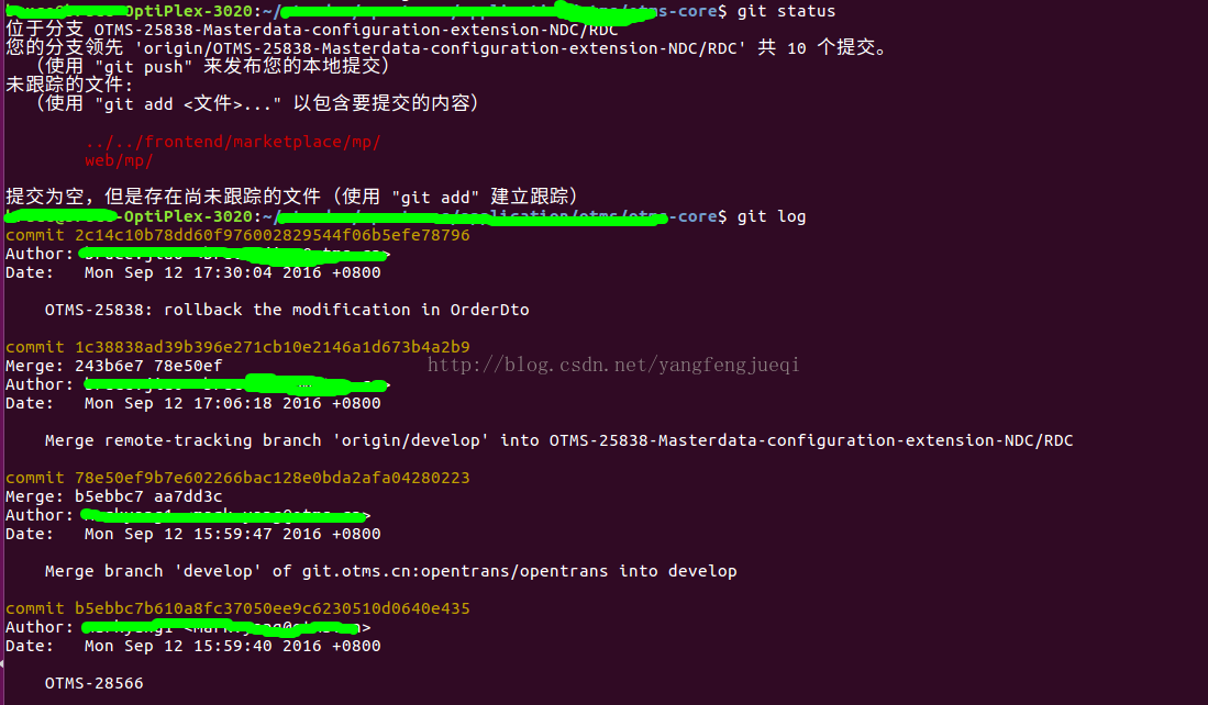 現(xiàn)在想要撤銷最后一次提交,即上圖中“OTMS-25838: rollback the modification in OrderDto”這個commit;