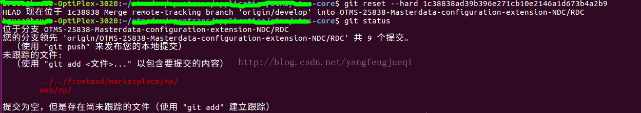 現(xiàn)在要撤銷該commit,但是又不能撤銷該提交包含的更改,使用git reset --soft,執(zhí)行結果為