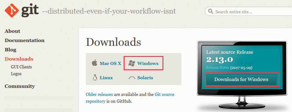 1.從git官網(wǎng)下載一個(gè)git安裝包,官網(wǎng)下載地址http://www.git-scm.com/download/
