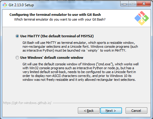 7.設(shè)置環(huán)境,選擇使用什么樣兒的命令行工具,一般情況我們使用默認(rèn)配置,使用Git Bash,點(diǎn)擊【Next >】