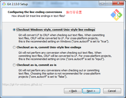 - 讓Git能夠自動(dòng)轉(zhuǎn)換文件中的換行符:簽出到本地時(shí)轉(zhuǎn)換為Windows下的換行符,提交到服務(wù)器時(shí)轉(zhuǎn)換為Unix下的換行符