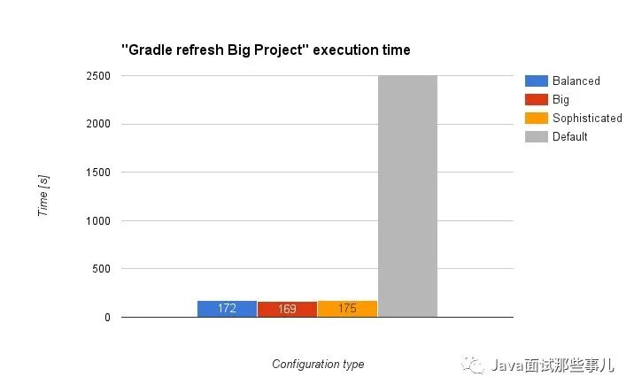 重要提示:代表默認(rèn)設(shè)置的灰色條形柱非常高,因?yàn)?IDEA 在刷新過程中崩潰了,筆者無法測(cè)量實(shí)際時(shí)間。顯然,默認(rèn)分配的內(nèi)存不足以執(zhí)行該操作。