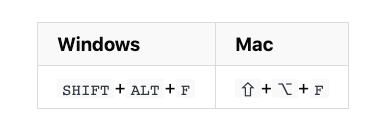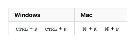 15. CTRL + K CTRL + F :格式選擇的代碼